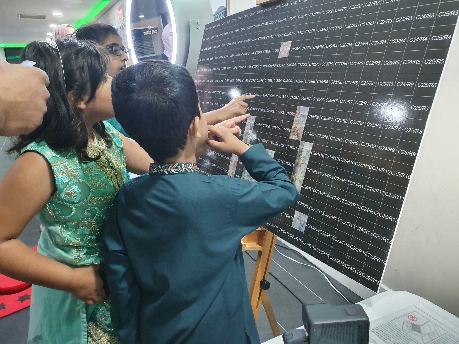 In a ‘physical setup’: The Photo Mosaic Wall automatically prints photos as stickers. Guests can engage in the interactive experience by placing their photo stickers on the mosaic board.