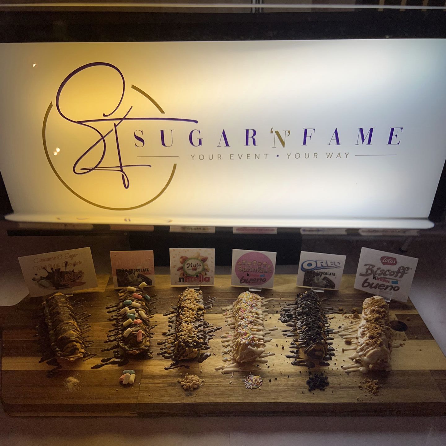 At Sugar N Fame we have spent countless hours perfecting the stick waffle recipe, the sauces, the toppings even down to the sticks that the waffles are served on. We can confidently say there is not another waffle out there that compares to ours!