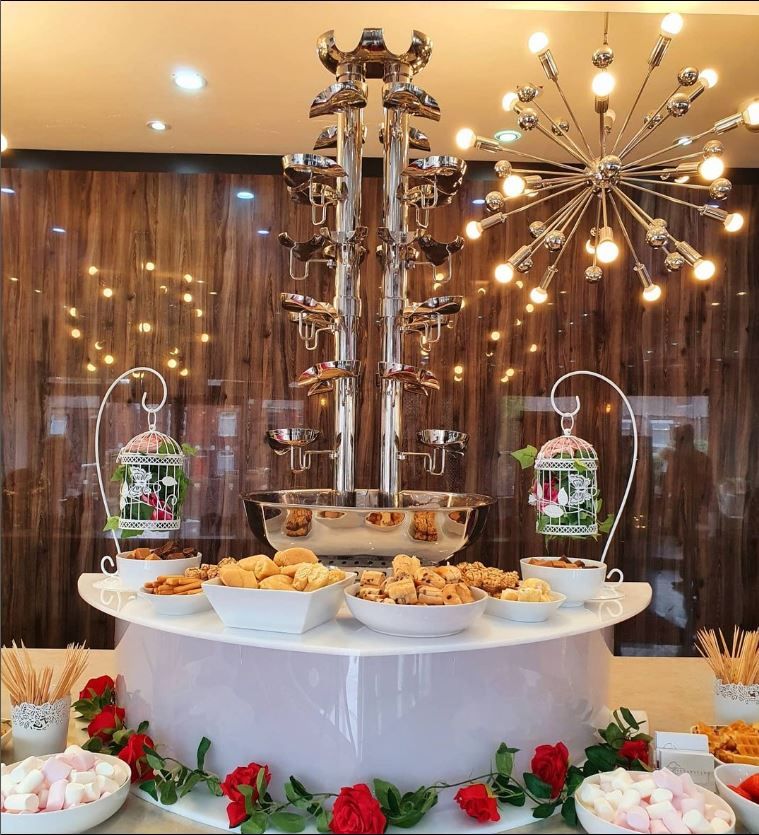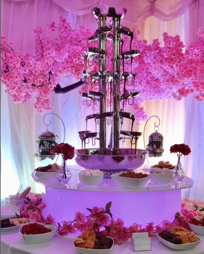 The stunning Sugar N Fame Dual Flow Cascading Chocolate Fountain towers over 8 feet high to give it that extra wow factor!