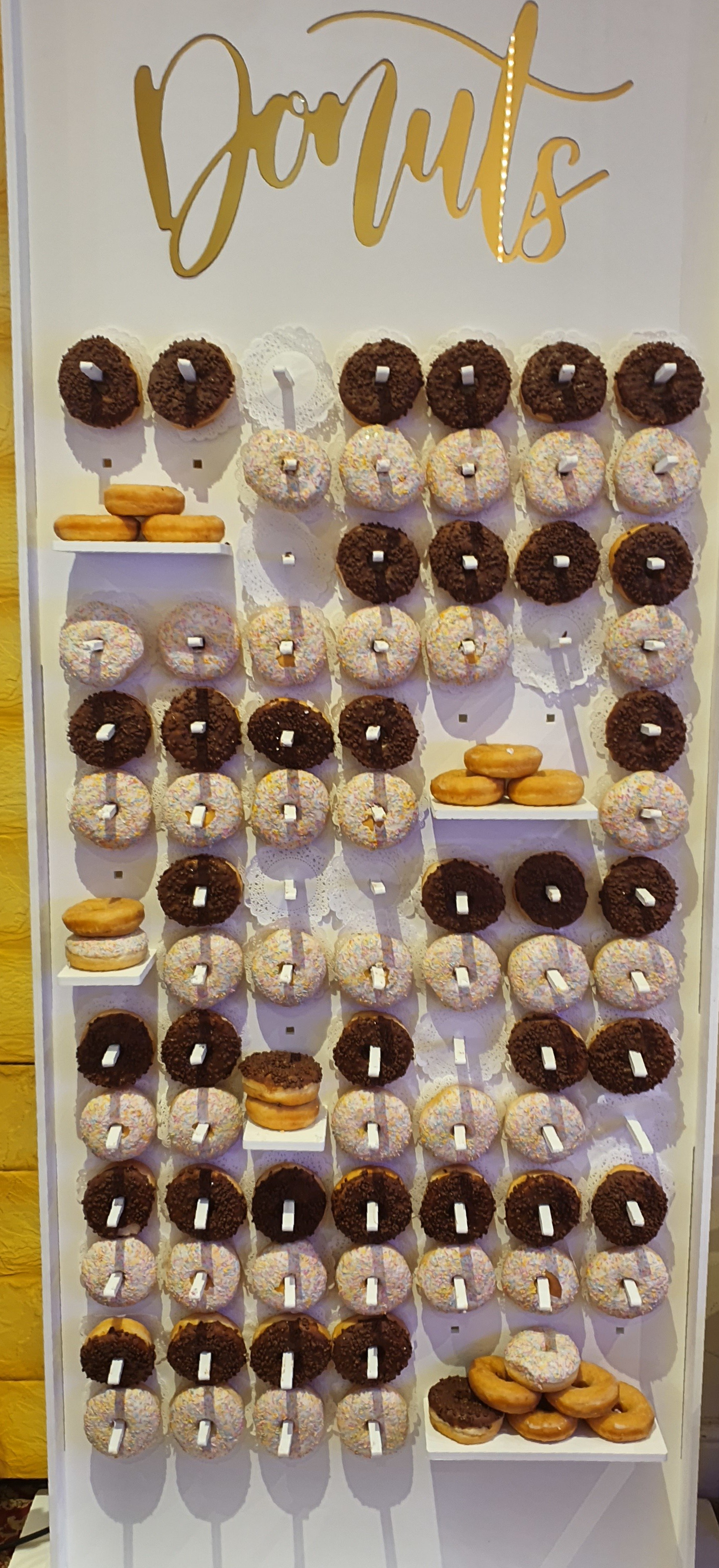 Who doesn’t love a doughnut? Our white doughnut wall is 2 meter tall which is around the size of a door frame. It can hold either 100 doughnuts or 200 doughnuts doubling up per peg.