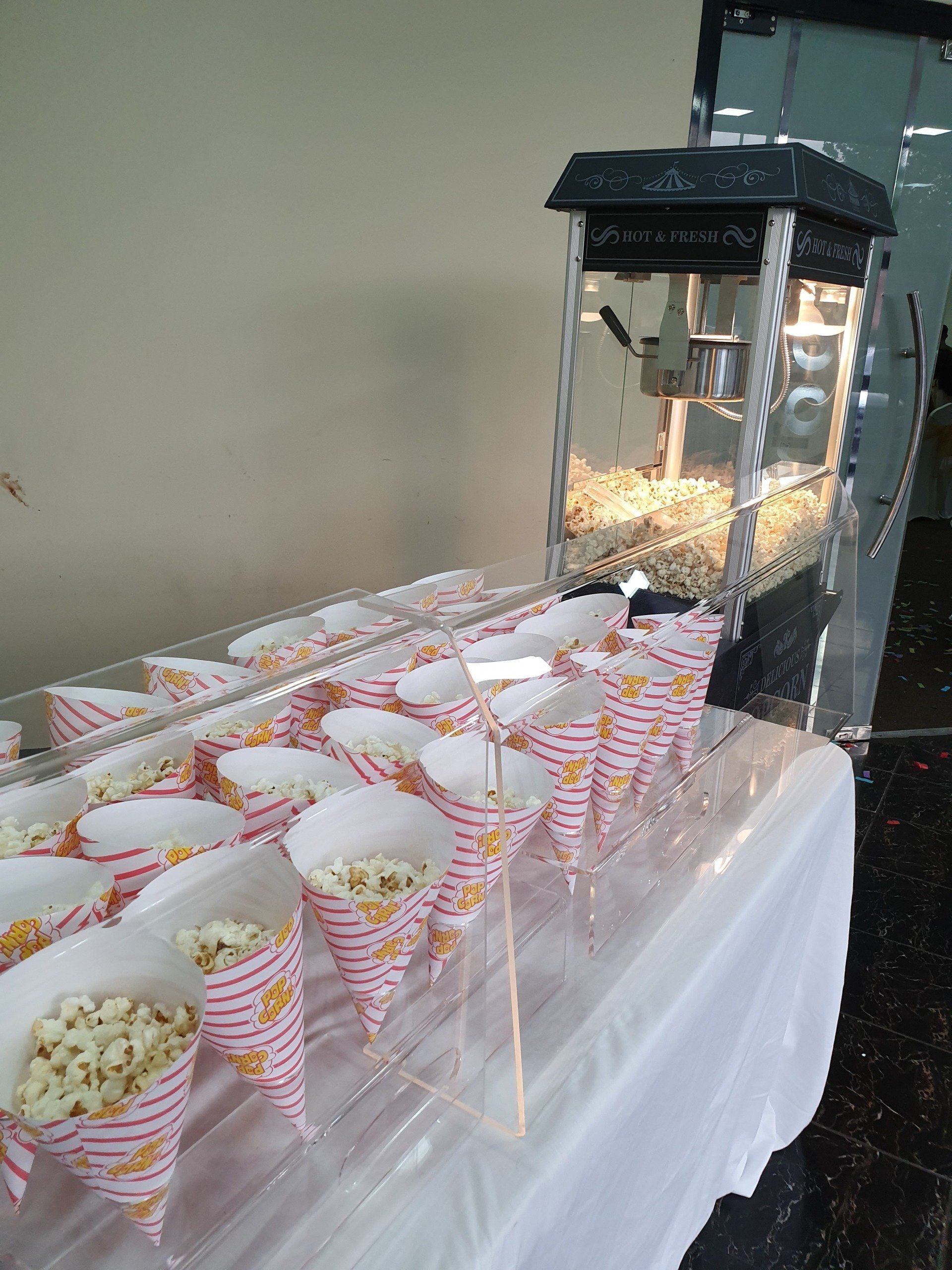 Our retro styled popcorn machine on wheels is a hit with all kids and adults alike. Our popcorn machine can be loaded with ready made popcorn. All popcorn is made 48 hours prior to your event and retains its crunch. Our ready made popcorn provides a cheap alternative to our gourmet range yes just as much fun!